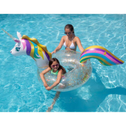 We have something for everyone and all ages! From small toys to help your child get used to the water – to every imaginable toy or game for active kids and “kids at heart” – to comfortable floats and loungers for sun worshippers.